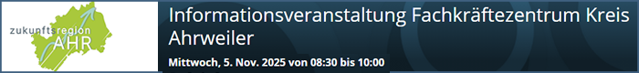 Aus diesem Grund hat der Verein Zukunftsregion Ahr e.V. gemeinsam mit der Kreisverwaltung Ahrweiler, der IHK-Koblenz, der Handwerkskammer Koblenz, der Bundesagentur für Arbeit Koblenz-Mayen, dem Jobcenter Kreis Ahrweiler, der Volkshochschule Kreis Ahrweiler, der Hochschule Koblenz sowie dem DEHOGA das Fachkräftezentrum Kreis Ahrweiler ins Leben gerufen. Gefördert und unterstützt wird der Aufbau des Fachkräftezentrum durch das Ministerium für Arbeit des Landes Rheinland-Pfalz.