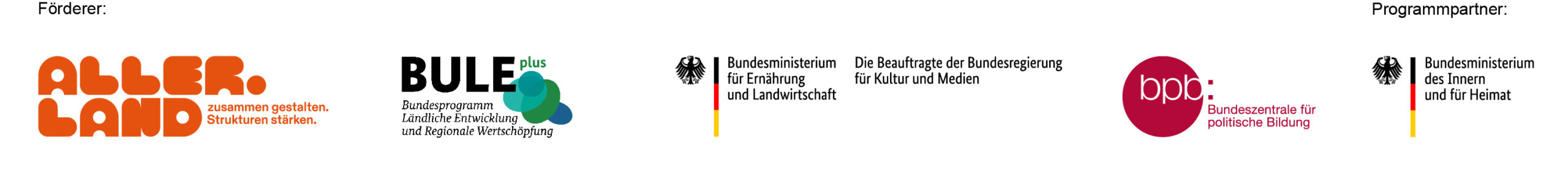 „Aller.Land – zusammen gestalten. Strukturen stärken.“ ist ein Programm für Kultur, Beteiligung und Demokratie. Es richtet sich an ländliche, insbesondere strukturschwache ländliche Regionen in ganz Deutschland. Gefördert wird „Aller.Land“ durch den Beauftragten der Bundesregierung für Kultur und Medien (BKM) und das Bundesministerium für Landwirtschaft, Ernährung und Heimat (BMLEH) sowie durch die Bundeszentrale für politische Bildung (bpb). Programmpartner ist das Bundesministerium des Innern (BMI). Der Bund stellt für das Programm von 2023 bis 2030 insgesamt 69,4 Millionen Euro aus dem Bundesprogramm Ländliche Entwicklung und Regionale Wertschöpfung (BULEplus) sowie aus Mitteln der bpb zur Verfügung.