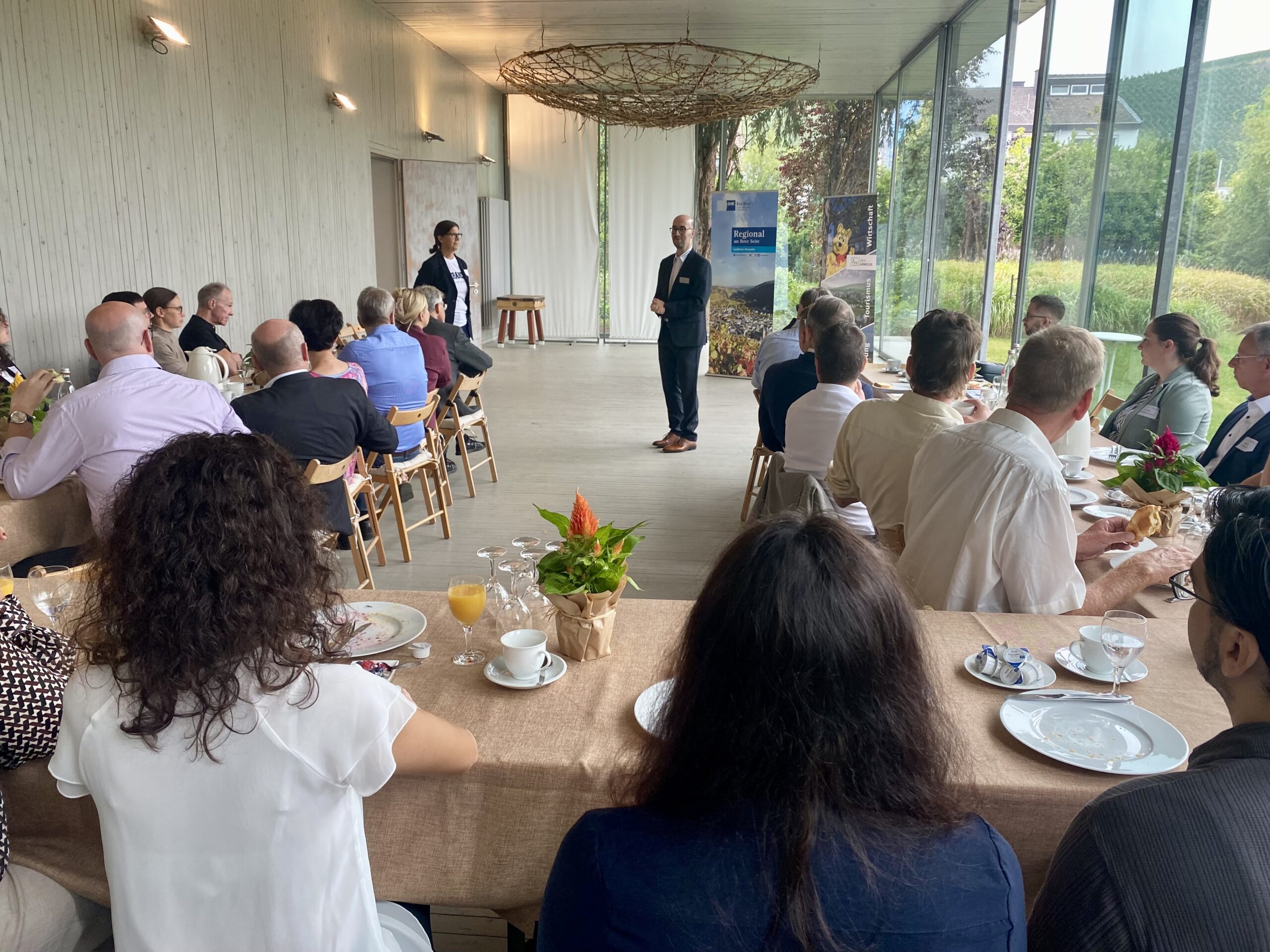 Mit der Veranstaltungsreihe Unternehmer:innenfrühstück bietet die Wirtschafts- und Tourismusförderung eine regelmäßige Austauschmöglichkeit an. Das circa anderthalbstündige Frühstück behandelt kurz und prägnant aktuelle Themen und bietet ausreichend Zeit zum Austausch und zur Diskussion. Dabei rotiert der Veranstaltungsort des Unternehmer:innenfrühstücks in den kreisangehörigen Kommunen.