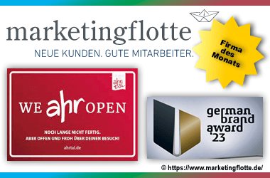 Die Marketingflotte GmbH aus Bad Neuenahr-Ahrweiler durfte kürzlich den „german brand award ´23“ in Berlin in Empfang nehmen. Ihre Kampagne „We AHR open“, die für den Ahrtal-Tourismus Bad Neuenahr-Ahrweiler e.V. entwickelt wurde, vermittelt das unsere Heimatregion auch nach der Flutkatastrophe weiterhin sehenswert ist.