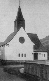 Wenn dieses Jahrbuch in die Hände seiner Leser kommt, wird die neue evangelische Kirche in Ahrweiler eingeweiht und in gottesdienstlichen Gebrauch genommen sein. Damit erfüllt sich ein langgehegter Wunsch der in Ahrweiler wohnenden Glieder der evangl. Kirchengemeinde Bad Neuenahr. Aber auch aus einem besonderen Grunde wurde der Neubau eine unausweichliche Notwendigkeit. Nach dem Zusammenbruch erhöhte sich durch den Zuzug zahlreicher Heimatvertriebener die evgl. Gemeinde Bad Neuenahr auf über 3000 Seelen, von denen nach den neuesten Unterlagen 700 zum Amtsbezirk Ahrweiler gehören. Wenn unsere Brüder und Schwestern aus dem Osten und dem Herzen unseres deutschen Vaterlandes wirklich Heimat bei uns finden sollen, dann gehört vor vielem anderen dies dazu, daß sie auch eine geistliche Heimat haben, ein Gotteshaus, wo man zusammenkommt zum Gottesdienst und zur Feier des hl. Abendmahls, wo die Kinder getauft und konfirmiert und die Ehen eingesegnet werden. Der uns in dankenswerter Weise von der Kreisverwaltung zur Verfügung gestellte Raum in der Kreisberufsschule konnte den berechtigten Ansprüchen der Gemeindeglieder je länger je weniger genügen.