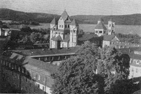 Aber zwei Söhne Gerhards waren mit diesem „Canossagange" ihres Vaters nicht einverstanden. Der älteste Sohn Otto, der als Erbe die Grafschaft Neuenahr erhielt, die Burg Neuenahr baute und Stammvater des Neuenahrer Grafengeschlechtes wurde, mischte sich nicht in den Streit. Aber sein Bruder Theoderich, der durch Heirat Erbe und Herr von Malberg an der Kyll wurde, erhob mit seinem jüngeren Bruder Johann, dem Erben von Nürburg, am 6. Januar 1213 scharfen Protest gegen die Beschlüsse von Laach und Andernach aus dem Jahre 1209, die vom Vater nur erzwungen worden seien. So heftig verfocht Theoderich von Malberg sein vermeintliches Recht, daß er selbst der Exkommunikation und die Herrschaft Malberg dem Interdikt verfiel. Endlich, als in seinem Ländchen an der Kyll keine Glocken mehr läuteten, kein hl. Meßopfer mehr gefeiert und keine Sakramente mehr gespendet werden durften, verstand sich Theoderich zur Verständigung. In einer Zusammenkunft in Koblenz verzichtete er mit seinem Bruder Johann von Nürburg vor dem Erzbischof Johann von Trier und anderen Prälaten gegen eine Abfindung von 130 Mark auf die vogteilichen Rechte der Abtei Laach. Der Erzbischof Johann von Trier verbot nun für die Zukunft dem Abt und dem Konvent von Laach, einen Klostervogt zu wählen. In Zeiten der Bedrängnis sollten sie ihre Zuflucht zu den Erzbischöfen von Köln und Trier nehmen. So bestand das weltliche Vogteiamt für Laach nur 120 Jahre. An der Schroffheit Gerhards von Are-Nürberg bewahrheitet sich der Satz: „Strenge Herren regieren nicht lange!" Noch eine andere geschichtliche Tatsache tritt in Erscheinung: Die Erzstifte Köln und Trier erhalten nicht nur die Vogteirechte, sie teilen sich auch in die ehemaligen pfalzgräflichen Güter, die einst Reichsgüter waren. So besaß Köln die Tomburg, Burg Rheineck, Andernach und Rhens, während der größte Teil des Kreises Mayen mit dem Pfalzgrafengut um den Laacher See zu Trier kam. Wieder wird der Vinxtbach mit dem sich nach Westen anschließenden Höhenzuge, der auch die Eifelbarriere genannt wird, zur Landesgrenze, wie er bislang Niederlothringen von Oberlothringen, vorher die ripuarischen von den Moselfranken, und noch früher die römischen Provinzen Niedergermanien von Obergermanien trennte, da er nun Kurköln von Kurtrier schied. Der Segensstrom aber, der von dem Kloster Maria Laach ausging und noch ausgeht, machte an diesen Landesgrenzen nicht Halt, sondern reicher Segen erstreckte sich über die ganzen rheinischen Lande.