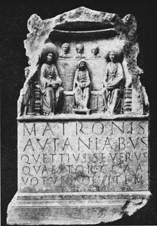 Weihestein für die aufanisdlen Matronen, gestiftet von Quintus Vettius Severus Quästor (Leiter des Finanzwesens) der Colonia Agrippinensis im Jahre 164
