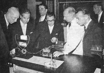 einer Ausstellung. Auf unserem Bilde eins Szene im Physiksaal: von links Bad
