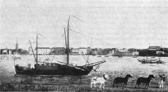 „Um das Jahr 1816 herrschte am Rheine noch Stilleben. Die Schiffahrt betrieb man in kleinen hölzernen Booten, die mit vorgespannten Pferden mühsam zu Berg getreidelt wurden, durchaus handwerklich." Das blieb so bis in die vierziger Jahre, wo sich allmählich die Anwendung der Dampf= kraft in der Schiffahrt durchzusetzen begann. „Das Erscheinen der ersten Dampfer auf dem Strom bei Köln und bei Koblenz versetzte unsere Urgroßeltern in Staunen. Sie begriffen kaum, wie ein Schiff in der Mitte des Stromes ,ohne Ruder und Segel und ohne Halfterpferde, sich gegen den Strom fortzubewegen vermochte, — war doch die Bergfahrt, seit die Welt stand, an die Treidelei vom Leinpfade aus gebunden gewesen." Das erste Dampfschiff, das im Jahre 1817 bis Koblenz vordrang, war die vom Erfinder der Dampfmaschine James Watt erbaute „Caledonia". Sie hatte zwei Maschinen von 50 PS.