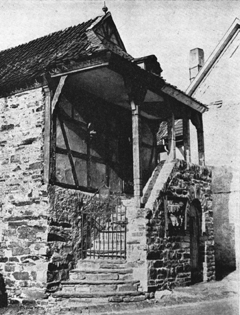 Es steht an der Westspitze des dreieckigen alten Ortskerns. Das Untergeschoß mit einer Apsis für den großen Backofen ist aus massivem Bruchsteinmauerwerk errichtet; auch die Seitenwände sind aus Bruchstein bis zum Dach hochgezogen, aber die beiden Giebelwände hat man als Fachwerk aufgesetzt. Der Rundung des Backofens an der Nordseite konnte das Fachwerk natürlich nicht folgen, so daß hier die beiden Ecken der Stirnwand über das Untergeschoß hinausragen. Den eigentlichen Schmuck des Bauwerkes aber bildet der überdachte steinerne Aufgang am Südgiebel.