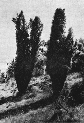Sagt, habt Ihr Euch nochnie gefürchtet, wenn irn Nebel plötzlich ein Wacholderalter im schwarzen Umhang vor Euch stand wie ein Dieb in der Nacht? Fragt nur die Liebesleute, auch sie wissen um seine Zauberkraft und die bindende Bedeutung der in seinem Schatten gesprochenen Worte. Fragt auch die Kinder, die einen großen Bogen um ihn machen, wenn im Mai eine gelbe Wolke von Blutenstaub aus ihm hervorquillt und sich auf den roten Teppich des Heidekrautes legt, die weißen Hüften der schlanken Birken umspielt und den jungen Föhren die Sicht nimmt.