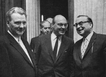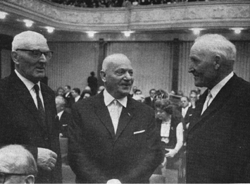 v. I.: Kreisausschußmitglieder Sohn und Frömbgen, Bürgermeister
