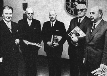 Unter dem Beifall der Sitzungsteilnehmer überreichte er den Genannten als Erinnerungsgabe das Buch „Unser Jahrhundert im Bild".