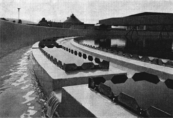 Im Oktober 1067 konnte die gesamte Anlage in Betrieb genommen werden. Die Kläranlage ist so bemessen, daß sie unter Berücksichtigung des Einwohnerzuwachses und anfallender gewerblicher und industrieller Abwässer für rd. 100 ooo Einwohner ausreicht.