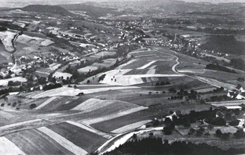 die Großbaustelle der Brohltalbrücke der künftigen A 14. Wird sie in wenigen Jahren fertiggestellt sein, werden der Landschaft wohl neue Akzente gesetzt, keine schlechten Perspektiven können sich eröffnen. Anschließend bestimmt wiederum, wenigstens auf der linken Talseite, der Wald mit steilem, felsigem Abhang die Landschaft: es ist der „Scheid", der erst kurz vor dem einstigen Herchenberg endet. Bis in die fünfziger Jahre war es der kahle Gipfel dieses vulkanischen Quellers, der eindrucksvoll sich über das untere Brohltal erhob. Dem Namen nach und auch Funden aus früherer Zeit folgend, hatten hier schon die Römer eine Kultstätte, die in den ausgedehnten Traßlagern und -brüchen des unteren Brohltales arbeiteten. Im Mittelalter, ja bis ins vorige Jahrhundert sollen umfangreiche Weinberge mit ein wirtschaftsbestimmender Faktor gewesen sein. Unheimliche Spukgestalten, in Märchen und Sagen lebendig, so „Herchenbergsjuffer" und „Molenmännchen", überdauern auch das Wirken einer Zeit, die Berge ohne weiteres verschwinden läßt. - Die Tonlager, die im südöstlichen Gelände des Herchenberges zutage traten, ließen um die Jahrhundertwende die feuerfeste Industrie von Burgbrohl entstehen. Heute haben sich im ehemaligen Werksgelände neue Produktionsstätten aufgetan, die mit der „alten Industrie" zu einer wirtschaftlichen Expansion von Burgbrohl beigetragen haben. Vom Ortsteil Weiler aus, dem einstigen Niederoberweiler, stößt der Almersbach, aus einem weitläufigen Staatsforst kommend, zum Brohlbach, und von der Höhe ist es Buchholz, das heute als bäuerliche Domäne die Landschaft bestimmt, aber einst als Propstei der Benediktiner aus Mönchengladbach Zeugnis gab von klösterlichem Wirken.