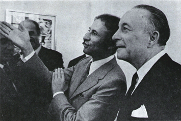 Vor allem sollten hier Ateliers zur Verfügung stehen, und sie würgen u. a. bewohnt von Bildhauer Lajos Barta (Budapest), hier ist eine Kunstausstellung nach der anderen gewesen: Kokoschka, Kecker, Arp, Beuys, Mense, die Molls, Sievogt, Dali. Da Johannes Wasmuth großzügig ist, helfen ihm auch andere gern. Er besuchte Picasso ohne ein Wort Spanisch und brachte Blätter aus seiner Hand mit. Er bekam ein Geschenk, das dem Bahnhofsvorplatz mehr als ' einen Akzent gibt: das drei Meter hohe Bildwerk „Beschwingtes Tanzgeschmeide". Die Witwe von Hans Arp schenkte es ihm. Und bald wird, direkt am Rheinufer, eine große Plastik des Engländers Henry Moore stehen, für die der Bildhauer in den italienischen Steinbrüchen von Carrara den Marmor suchte.