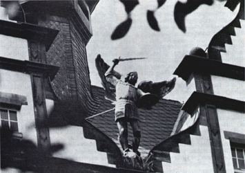 „Auf dem First (des Alumnates) steht er in Kampfstellung und von seinem Schilde erstrahlt der Kampfruf: Wer ist wie Gott. Er erinnert uns an den Kampf, der nie aufhört in diesem Leben: Für und gegen Gott. Dieser Kampf um Gott hat seine tiefe Ursache in dem „Geheimnis der Bosheit". In diesem Kampf zwischen Gut und Bös bleibt keinem Geschöpf die Entscheidung erspart. Neutrale und Schlachtenbummler gibt es nicht. Um Gott ringen heißt ihn festhalten in der Seele, heißt ihm anhangen, heißt in ihm das Letzte, Endgültige, Absolute sehen, heißt sein ganzes Leben hineinwerfen in den Strom seiner Gnaden ... Dein Leben, das wie ein Bannerbild den Feinden Gottes entgegenleuchtet, (sei) ein Leben des Glaubens, ein Leben der Hoffnung und ein Leben tätiger Liebe!' (1934)