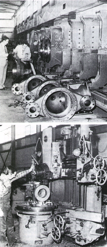Solche Qualität verlangt nicht nur beste Materialien, sondern auch größtmögliche Präzision in der Fertigung. Beispiel: die kompliziert geformten Zylinder. Entworfen auf den Reißbrettern in Liers und nach exakten Spezialhartholz-Modellen aus der eigenen Modellschreinerei oder auch Fremdbetrieben in Grauguß oder Chromnickelstahl je nach dem chemischen Charakter des Transportguts — Säure, Lauge — gegossen, werden sie auf übergroßen Präzisions-Bohrautomaten in ihre betriebsfertige Form gebracht. Zugelieferte Schmiede-Kurbelwellen erhalten ihren „letzten Schliff" auf den Tausendstelmillimeter genau; dabei wiegt ein solches Ungetüm bis zu zehn Tonnen und kann bis zu 320 Millimeter Durchmesser aufweisen. Zu solchen Arbeiten braucht man erstklassige Fachkräfte, vor allem Maschinenbauer und Bohrwerksdreher.