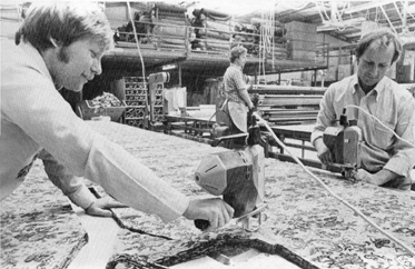 sein Gesellschafter Jakob Weber, der wie er aus der Möbelbranche kam, schied 1970 aus der Firma aus, und das Unternehmen wurde in eine Familien KG umgewandelt. Bis zu diesem Zeitpunkt aber hatte die Weco bereits eine stürmische Entwicklung mitgemacht. 1956 war mit dem Bau der ersten Werkshalle begonnen worden, Produktionsbeginn war schon ein paar Monate später. Mit nur wenigen ungelernten Arbeitern und Helfern wurden 1957 die ersten einfachen Bettcouches zusammengebaut und auf den Markt gebracht. Mit Erfolg, wie sich bald herausstellte. Durch konsequente Schulung und Ausbildung der Mitarbeiter, durch erfolgreiches Anlernen, war die aufstrebende Firma bald in der Lage, komplizierte Polstergarnituren in Auftrag zu nehmen und zu fertigen. Der Fortschritt in der Fertigung brauchte Platz. Schon zwei Jahre nach Produktionsbeginn mußte die Weco zum ersten Male anbauen. Dieser ersten Baustufe sollten sich im Laufe der Jahre noch eine Vielzahl weiterer hinzugesellen. Heute erstreckt sich das Betriebsgelände über 68 000 Quadratmeter. Die reine Betriebsfläche umfaßt schon 25 000 Quadratmeter.