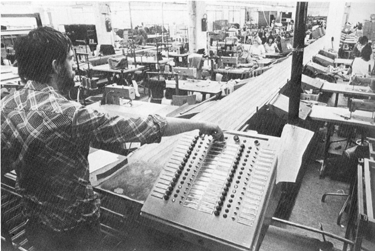 Ein weiterer entscheidender Schritt nach vorn in der Entwicklung dieses Leimbacher Unternehmens war die Umstellung der Fertigung vom Fließband zum individuellen Einzelarbeitsplatz. Das eher stumpfsinnige und abstumpfende Einerlei des immer wieder gleichen Handgriffs am Fließband wurde ersetzt durch den Übergang zur kompletten Herstellung eines ganzen Möbelstücks. Während der Arbeiter vorher nie das Endprodukt seiner Arbeit sah und sich mit dem Stück vertraut machen konnte, entwickelt sich jetzt so etwas wie eine "Produktidentifikation«. Die Arbeiter in der Produktionsgruppe sehen, wie beispielsweise ein Ledersessel oder eine Wohnlandschaft unter ihren Händen wächst und Gestalt annimmt. Dadurch — diese Erfahrung wurde auch schon in manchen Bereichen der Großindustrie gemacht, beispielsweise hat der schwedische Automobilkonzern Volvo ähnliche Experimente durchaus positiv durchgeführt — wird dem Mitarbeiter zwar ein größeres Maß an Verantwortung auferlegt, aber gleichzeitig auch ein sehr viel größeres Maß an Befriedigung vermittelt. Seine Einstellung zum Produkt wird positiv beeinflußt. Die Mitarbeiter der Weco jedenfalls haben nach einer längeren Umschulungsphase, die bedingt war durch die größere Zahl von Arbeitsvorgängen, die der einzelne zu leisten hat, überwiegend positiv auf die Umstellung reagiert. Die Fingerfertigkeit und das Können der eher jüngeren Belegschaft, die sich aus der Bevölkerung der näheren und weiteren Umgebung rekrutiert — 14 Kleinbusse sind täglich unterwegs, um aus 25 bis 30 Kilometer Entfernung Weco-Mitarbeiter zu ihren Arbeitsplätzen und abends zurückzubringen —, ist natürlich nicht zu ersetzen. Ersetzen aber konnte man das Fließband, das die Teile anbrachte. Für die Materialbeschickung zu den Arbeitsplätzen steht jetzt eine hochmoderne Induktiv-Anlage zur Verfügung: Wie von Geisterhand gesteuert, fahren unbemannte Wagen durch die Hallen, öffnen sich selbst die Türen, den Lift, rollen im oberen Stockwerk wieder hinaus, stoppen vor den Arbeitsplätzen, die Materialien werden entnommen und der Wagan rollt computergesteuert zurück. Ein bißchen reale Sciencefiction im Polstermöbelgewerbe.