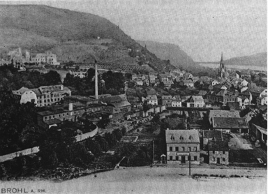 »Breisiger Ländchen«Der Ort Brohl, die südlichste der sechs zum früheren »Breisiger Ländchen« gehörenden Gemeinden, befand sich mit dieser Region seit etwa dem Jahre 1000 im Besitz des Damenstifts Essen. Ende des 17. Jahrhunderts wohnten hier keine hundert Menschen. Ein Jahrhundert danach waren es knapp 400, fünfzig Jahre später fast tausend. 1746 hatte sich Brohl aus der Landgemeinde Niederbreisig gelöst und war selbständige Gemeinde geworden. Nach der Besetzung des linken Rheinufers durch die Franzosen im Herbst 1794 wurde der Ort im Zuge der neuen Verwaltungsordnung aus diesem jahrhundertealten Verbund gelöst und der Mairie Andernach zugeschlagen. Erst in preußischer Zeit, als man die alte Verwaltungseinheit wiederherstellte, kam Brohl 1818 erneut zu Niederbreisig.