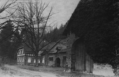 Bleiben wir bei der Geschichte dieses herrlichen Fleckchens im Dreieck zwischen der Abtei Maria Laach, Bad Neuenahr-Ahrweiler und dem Nürburgring. Um die Jahrhundertwende führte ein Kaisermanöver den Leutnant im 1. Garde-Ulanen-Regiment, Max von der Leyen, in das Heidegebiet von Oberdürenbach. Die romantische Idylle der Schirmau mit den drei winzigen Fachwerkhäuschen hielt er in guter Erinnerung. Schon wenige Jahre später erwarb der Krefel-der Baron den Sprengel der Schirmau und verwirklichte seine Pläne von einem Waldgut. Mit dem Bau des repräsentativen Gutshauses wurde 1906 begonnen. Die kleinen Fachwerkhäuschen mußten bis auf eins dem stolzen Neubau weichen. Die Steinbrüche der Eifel lieferten Basalt und Bruchstein und die Wälder das notwendige Bauholz. Es blieb aber nicht nur beim Bau des prächtigen Herrschaftshauses. Ihm folgten Stallungen, Gesindeflügel und Försterwohnung.