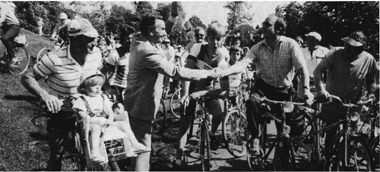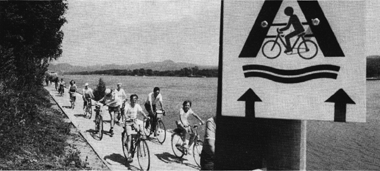 Der Bund Deutscher Radfahrer, der mit seinen rund 80 000 Mitgliedern der größte Interessenvertreter der Fahrradfahrer in der Bundesrepublik ist, nennt dafür einige Gründe: Für den einen ist das Fahrrad wieder zum Verkehrsmittel geworden auf dem Weg zur Schule, zum Arbeitsplatz oder zum Einkauf. Die Ursachen dafür sind vielfältig, nicht zuletzt hohe Energie- und Treibstoffpreise und die gestiegenen Kosten der allgemeinen Lebenshaltung müssen da mit angeführt werden. Für den ändern ist das Fahrrad Trimmgerät. 48 Prozent, so hat der Deutsche Sportbund in einer Untersuchung herausfinden können, betreiben in der Freizeit regelmäßig Radfahren als Ausgleichssport. Fahrradfahren ist nachgewiesenermaßen eine der gesündesten und zugleich preiswertesten Freizeitbeschäftigungen. Es bringt den notwendigen Ausgleich zu Streß, Hektik und Bewegungsmangel. Der Bund Deutscher Radfahrer, um ihn noch einmal zu zitieren, hat sich neben den Radsportlern insbesondere intensiv um die Freizeitradier gekümmert. Und nicht zuletzt dieser Interessenverband war es auch, der immer wieder aufgefordert hat, Radwege zu bauen, den Fahrradfreunden die Möglichkeiten zu geben, ihre Umgebung, die Nachbarschaft oder auch die weiter entfernt liegenden Regionen bequem und gefahrlos, auf angenehmen Routen zu erreichen. Immer größer wird die Zahl der Radwanderer,