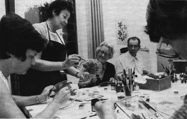 Kreativ mit Farbe und Pinsel: Hobbyisten bei der Hinterglasmalerei