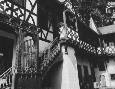 Schloßbau auf der Rheinhöhe von 1908 in an Renaissanceschlösser angelehntem Stil. Als Residenz des französischen Botschafters in sehr gutem Zustand gehalten. Einzige sichtbare Veränderung aus jüngster Zeit: eine schiebbare Panzerglaswand an Stelle der alten Eingangstür zum Garten hin.