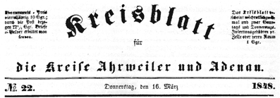 Als erste Zeitung in den Kreisen Ahrweiler und Adenau: Das »Kreisblatt« von 1848