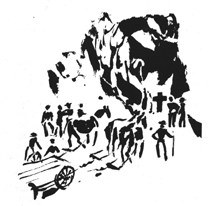 So geschah es, und man kam ein kleines Stück voran. »Weiter beten!« schrie da der Bauer, und alle beteten laut: »Im Namen des Vaters und des Sohnes und des heiligen Geistes ...«. Betend ging es nun langsam und mühsam aufwärts bis an den Hohlweg am oberen Ende des Weges. Schaum lag den Pferden auf den Flanken. Hier aber kam man nicht mehr weiter. Man hob den Bildstock vom Wagen und richtete ihn hier auf, wo er heute noch steht.
