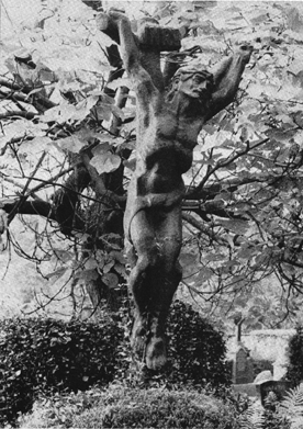 Eines der besonders ausdrucksstarken Werke von Hanns Matschulla: der geschundene und gekreuzigte Christus am Gabelkreuz. Standort ist der Friedhof in Ahrweiler.