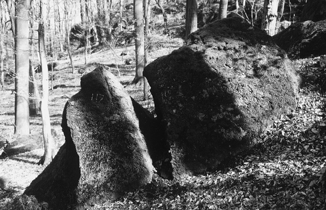 Römerzeitliche Abbauspuren an der Mauerley: eine mit römerzeitlicher Keiltaschentechnik gespaltene Säule.