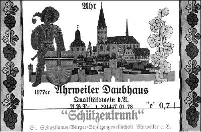 Seit 1976 wird das von dem Künstler Franz Ulrich gestaltete Weinetikett zur Kennzeichnung des traditionellen Schützenweins der St. Sebastianus-Bürger-Schützen-Gesellschaft Ahrweiler e.V. verwendet.