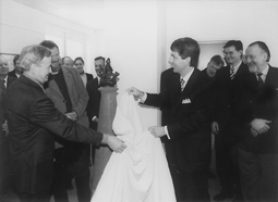 Kreisstadt-Bürgermeister Edmund Flohe äußerte Freude, Zuversicht und Zufriedenheit über die Ansiedlung der Forschungsanstalt in Bad Neuenahr-Ahrweiler. Die Verbundenheit der Kreissparkasse Ahrweiler mit der Akademie dokumentierte Sparkassendirektor Helmut Wilhelms. Er überreichte dem Hausherren Prof. Gethmann eine Bronzeskulptur des Künstlers Titus Reinarz als Dauerleihgabe. Ihr Name: Europa.