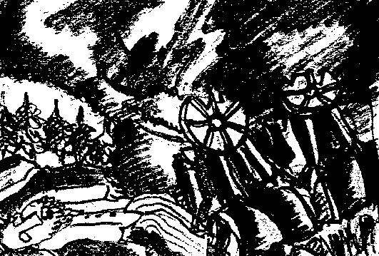 Während er verzweifelt versuchte, Pferd und Karre zu wenden, brachen die Speichen des linken Rades; die Karre kippte zur Seite. Noch einen Augenblick schwankte das Gefährt, dann stürzte es hinab in die Schlucht, riss Pferdchen und Pannehännes mit in die Tiefe.