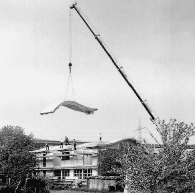 Kurze Bauzeit durch Holz-Fertigbauweise: Die Passiv-Häuser in Heimersheim wurden im Juni 2000 von mittelständischen Firmen aus dem Kreisgebiet errichtet.