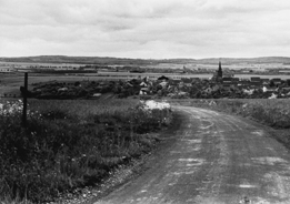 Blick auf Eckendorf von der Fritzdorfer Straße aus: im Hindergrund Gelsdorf und am Horizont die Eifelberge