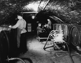 Blick in einen alten Fasskeller in Ahrweiler, 1950er Jahre