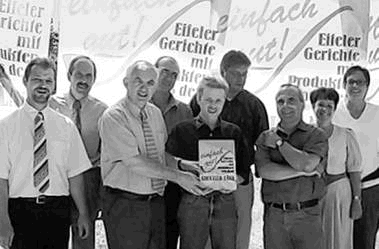 Bald zeigte sich, wie sehr das Standortmarketing Kreise gezogen hatte - nicht zuletzt im gemeinsamen Logo, das nun stellvertretend für al-le Aktionen der einzelnen Arbeitskreise und Symbol für die Kooperation zwischen den Trägern des Standortmarketings ist. Der Minister für Wirtschaft, Verkehr, Landwirtschaft und Weinbau, Hans-Artur Bauckhage, und über 150 Gäste konnten sich im Februar 2003 im Bürgerhaus Herschbroich einen Eindruck über die ersten Projekte und Strategien des Standortmarketings der Verbandsgemeinde Adenau verschaffen. Und da war es, der erste Schritt hin zum Modellfall Adenau: „Die Verbandsgemeinde Adenau ist für ganz Rheinland-Pfalz beispielgebend“, lobte der Minister und machte deutlich: „Standortmarketing ist nicht nur etwas für große Städte.“ Und Bauckhage versicherte die Unterstützung der Landesregierung und seines Ministeriums auch in Zukunft. Das tat gut. Immerhin heißt ein Projekt wie dieses, dass sich alle Beteiligten zunächst einmal eh-renamtlich einsetzen. Für die gemeinsamen Sitzungen in der Lenkungsgruppe, den Arbeitskreisen und den einzelnen Projektgruppen braucht es Zeit, die selten über ist. Doch ist allen Aktiven auch klar, dass die öffentlichen Kassen leer sind und die Region trotzdem an Attraktivität gewinnen muss. Um das zu erreichen, bedarf es des zusätzlichen Engagements so vieler Bürger wie möglich, organisiert und strukturiert durch das fest etablierte Instrument des Standortmarketings.