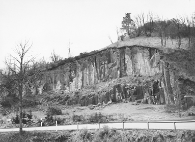 Phonolith bezeichnete Gestein mit breiten Säulen ist ein tertiärzeitlicher
