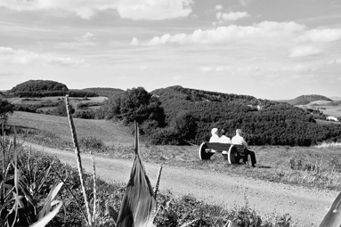 Im Vulkanpark Brohltal/Laacher See bei Brenk, 2005: Im Hintergrund (r.) die Burg Olbrück