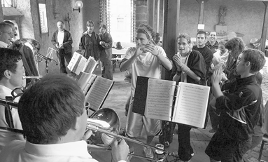 Die Jugend der Welt im AW-Kreis, hier beim Pfarrfest in Adenau: Als die deutsche Blasmusik aufspielte, hielt es diese italienischen Besucher nicht mehr auf den Bänken.