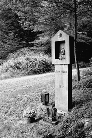 Alfons Fuhrmann mähte dann immer ein Stück seiner angrenzenden Wiese, damit die Pilger dort kniend zur Muttergottes beten konnten, denn inzwischen hatte man in der Nische des Bildstocks eine Marienfigur aufgestellt.
