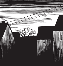 Jochem Pechau: Holzschnitt „Abend in Weibern“, 1982