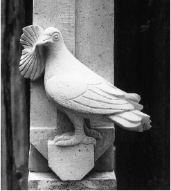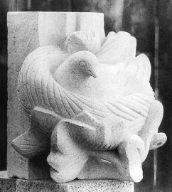 | Jochem Pechau: Friedenstaube aus Tuffstein | Taube im Nest aus Tuffstein |