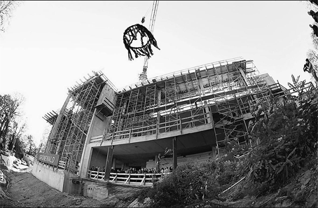 Der Richtkranz weht: Der Neubau des Arp-Museums soll im Herbst 2007 eröffnet werden.