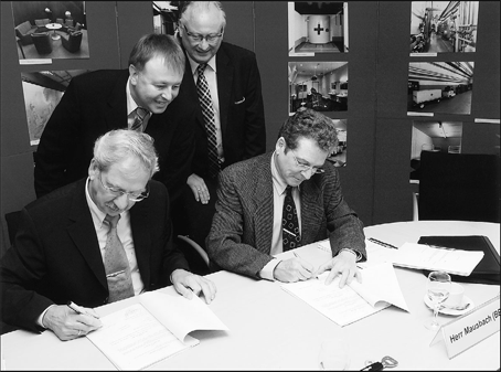 Vertragsunterzeichnung für das Museum im ehemaligen Regierungsbunker: Dr. Wilbert Herschbach (v.l.), Dr. Jürgen Pföhler, Florian Mausbach und Rüdiger Vogt.