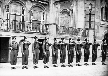 Französische Soldaten vor dem Kurhaus von Bad Neuenahr, um 1946