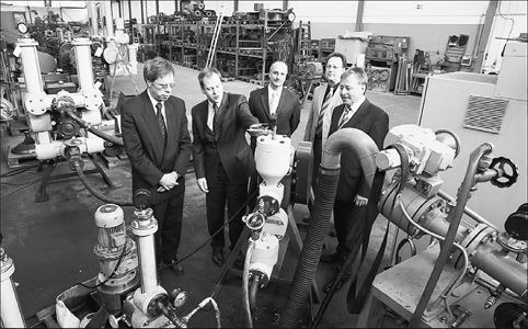 Stabiler Mittelstand als Rückgrat der Wirtschaft: Landrat Dr. Pföhler (r.) bei einem seiner Firmenbesuche im AW-Kreis