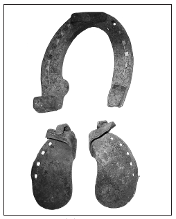Pferdehufeisen (o.) und Beschlageisen für Ochsen und Kühe (u.)