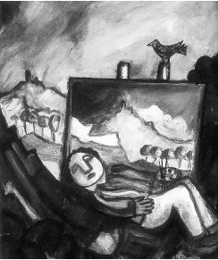 „Der Maler Ponsart schläft an der Staffelei“; Gemälde von Johannes Friedrich Luxem